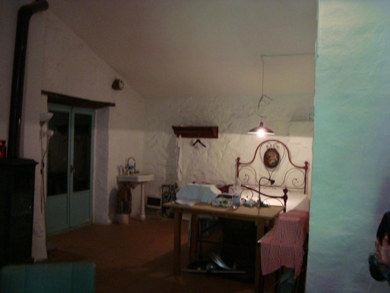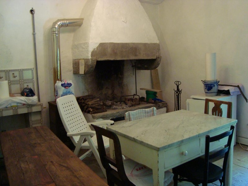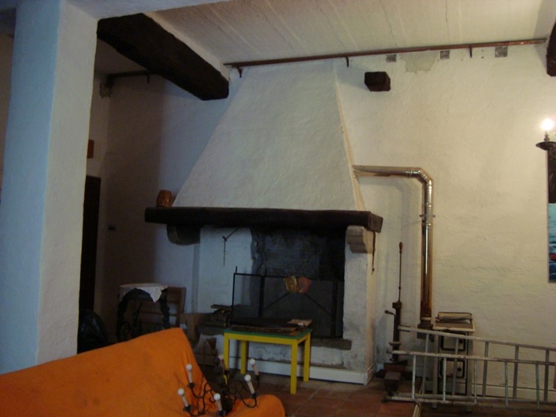 Piano terra: soggiorno - cucina con ampio salone atelier per eventi ed esposizioni e caminetto in pietra.