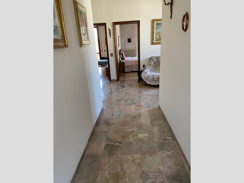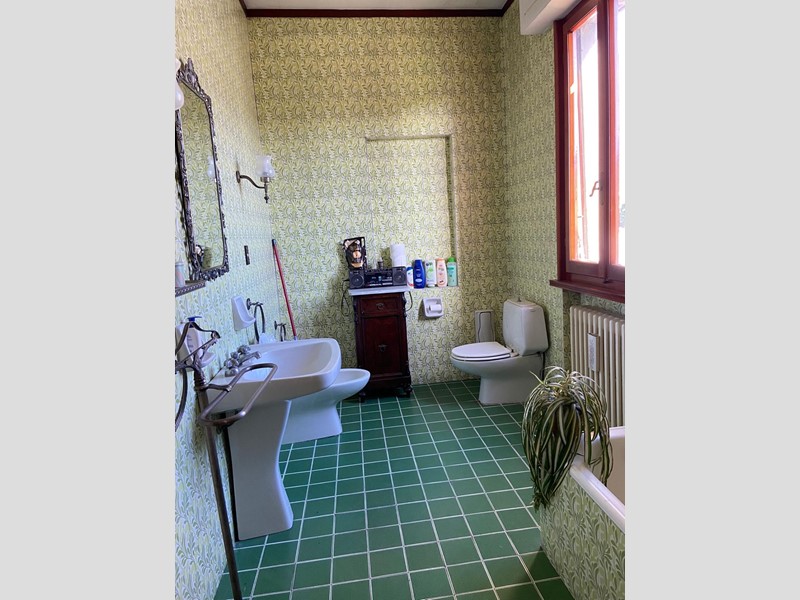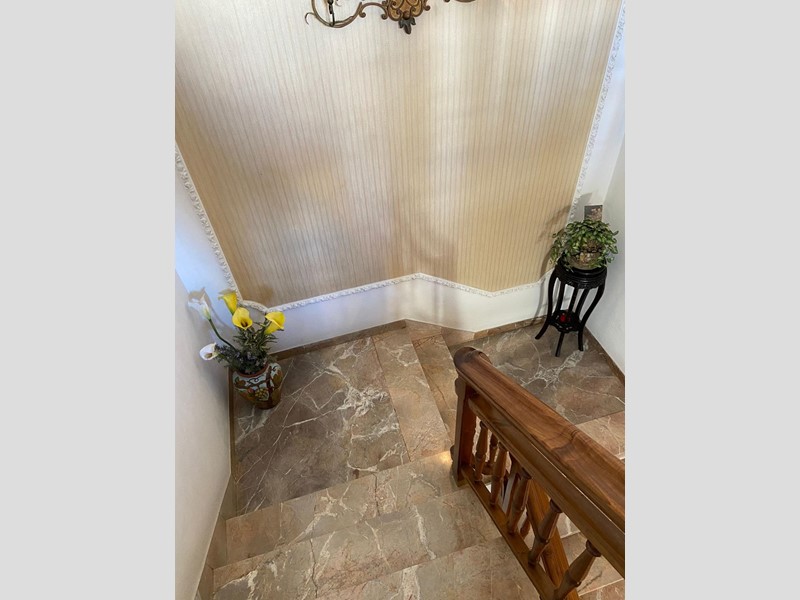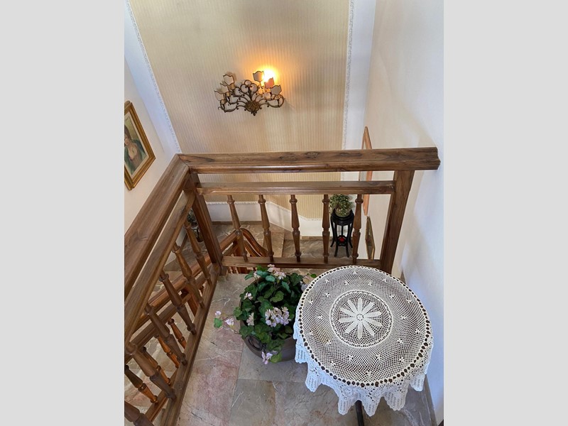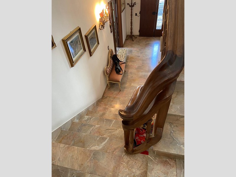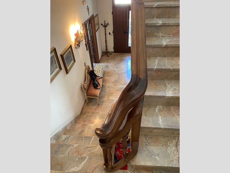 La casa, risalente agli anni ’60, è disposta su due livelli principali: al piano rialzato abbiamo un ampio ingresso, il soggiorno grande, la sala da pranzo con angolo cottura ed il servizio igienico finestrato. Il vano scala in marmo conduce al piano primo dove si trovano quattro camere da letto e doppi servizi igienici. Al piano seminterrato troviamo la taverna con camino, altro bagno ed il garage per altri 100 mq circa.