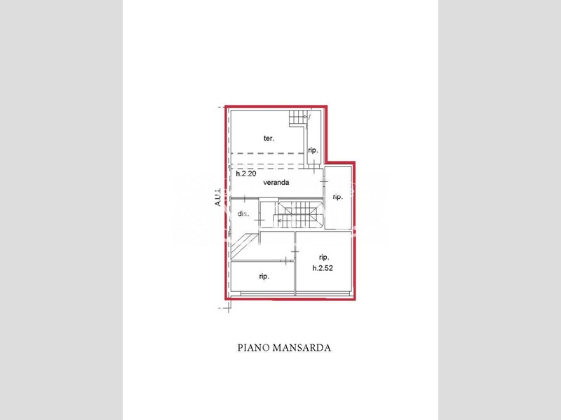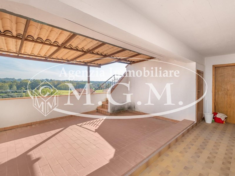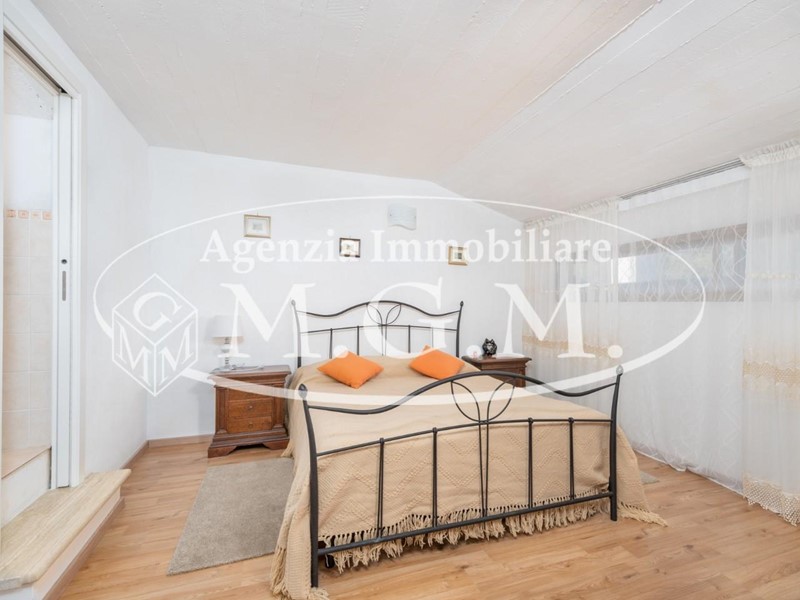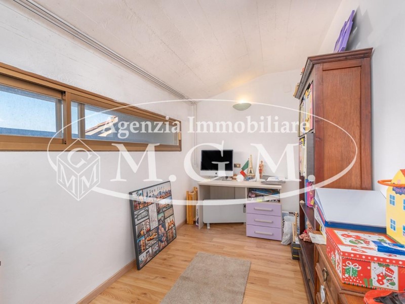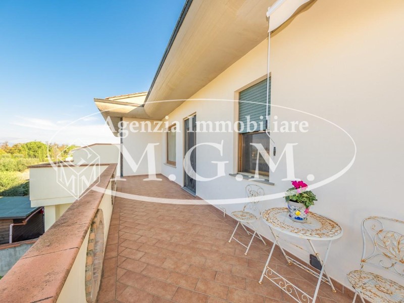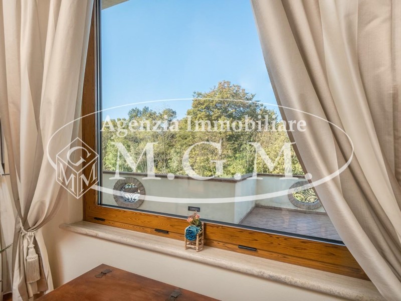 Dal soggiorno, a mezzo di scala interna accediamo al locale sottotetto/mansarda, attualmente suddiviso in tre ambienti: camera ampia, bagno, studio, oltre corridoio/ingresso dal quale accediamo ad una veranda e terrazza esterna (corredata da ripostiglio); da quest’ultima veranda a mezzo di scale esterne accediamo anche ad una terrazza panoramica sovrastante porzione della casa. Al piano terreno troviamo, un grandissimo garage (altezza molto alta dove è possibile ricavare un altro appartamento o fare un laboratorio) con antistante veranda e un locale caldaia e un bagno completo con doccia. L’abitazione è circondata da resede privato su tre lati: la parte antistante pavimentata in gran parte per posteggio auto, mentre la parte restante adibita a giardinino/parco con cisterna raccolte delle acque per irrigazione.