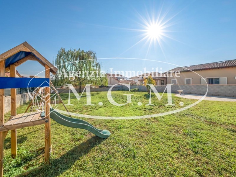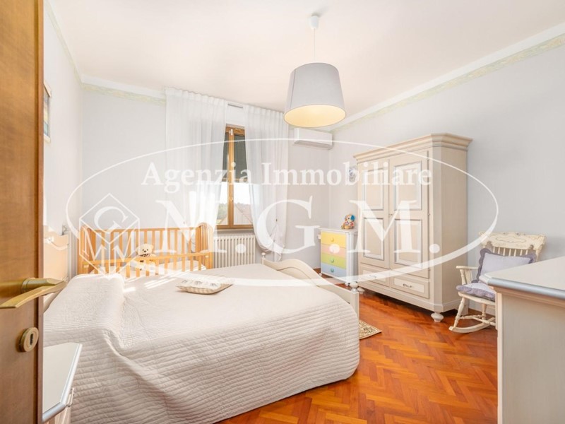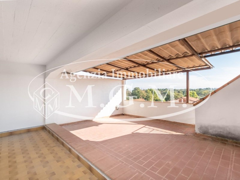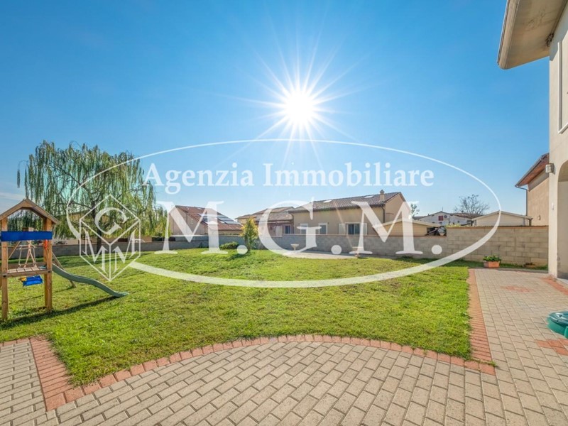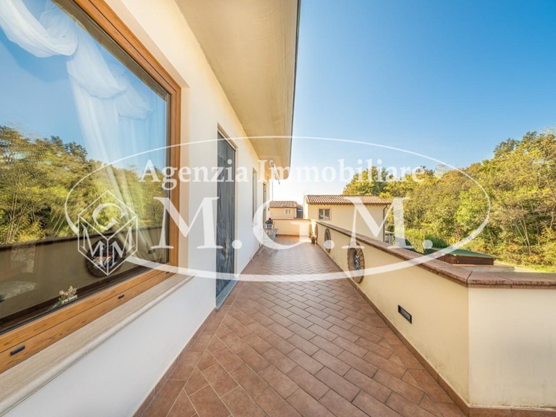 PORZIONE DI VILLA BIFAMILIARE ad Angolo, molto grande corredata di ampio terreno e resede privato di complessivi Mq. 780 oltre GARAGE/MAGAZZINO di Mq. 109. L’abitazione è composta da ampio appartamento di Mq. 180 posto al piano primo corredato di locale mansarda di Mq. 44 e terrazzi di oltre Mq. 36. All’appartamento accediamo da scala esterna con terrazzo caposcala. Entrando nell’appartamento veniamo accolti da un locale d’ingresso dal quale si accede al salone di oltre 40 Mq. e alla zona pranzo-cucina molto grande corredata da camino. Da entrambi gli ambienti accediamo alla terrazza abitabile posta ad ovest. Entrando nel reparto notte troviamo un corridoio dal quale si accede alle tre camere tutte matrimoniali, ripostiglio/armadi e locale bagno con doccia.