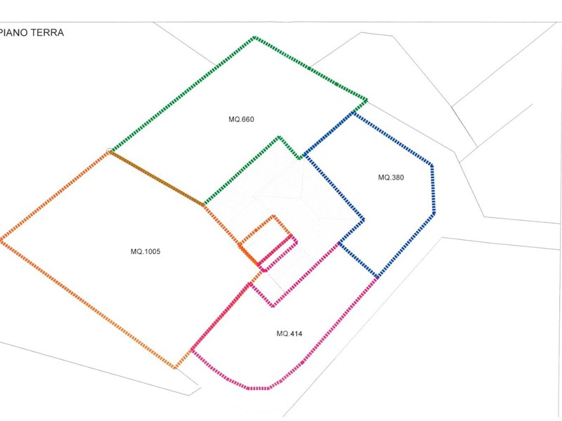 Siena, periferia, appartamento in porzione di casolare ristrutturato a nuovo di mq. 189 ( nella planimetria contornato in colore celeste), su due piani, ottima posizione composto da cucina abitabile soggiorno, 4 camere, tinello, due bagni, ripostiglio, giardino mq. 380. Trattabilità