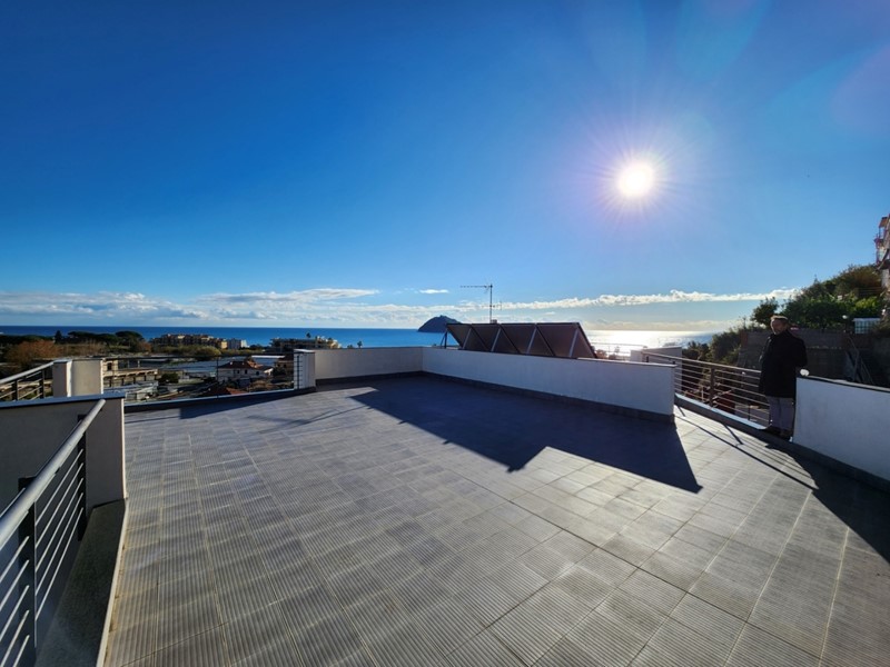 ATTICO CON TERRAZZO VISTA MARE E BOX!!! Vista dell'intero Golfo da questo attico di prestigio, con due camere e due bagni, con spettacolare terrazzo privato di 60mq. Balcone con stesso splendido affaccio anche nella camera padronale, finiture ottime, climatizzatore Daikin ultima generazione, in raffinato e piccolo complesso in zona di grande tranquillità. Ad un passo da Alassio ed Albenga, esattamente tra le due cittadine. Box auto lettralmente sotto casa, porta blindata, nulla è lasciato al caso in questa bella soluzione per chi cerca il mare (la VERA vista mare) senza dover spendere una fortuna.