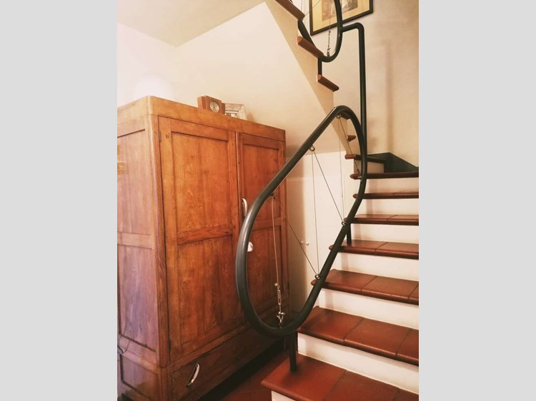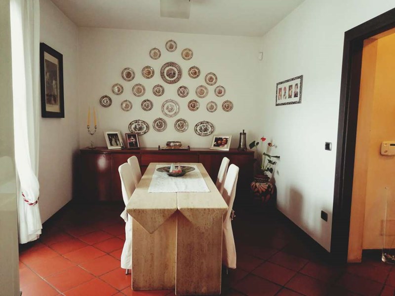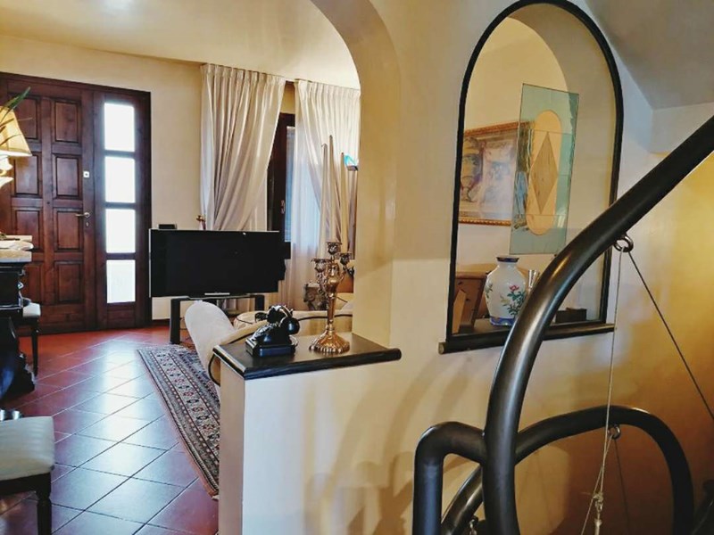 Proponiamo in zona semicollinare terratetto con ottime rifiniture, ben costruito e composto da ingresso pedonale da grande terrazza, sala, zona pranzo e cucina con terrazza vista valle,bagno finestrato con doccia, al piano inferiore troviamo la taverna con accesso al giardino tenuto benissimo e dotato di impianto di irrigazione automatica, la taverna ha cucina in muratura e camino, stanza lavanderia e stireria, garage ampio con apertura e chiusura automatica e allarmato,al piano primo tre camere da letto e bagno, due terrazze, al piano ultimo mansarda alta oltre tre metri con bella terrazza abitabile, bagno finestrato con doccia e soffitta. I pavimenti sono in cotto e parquet, con finitura in pietra serena. La casa è in zona residenziale.