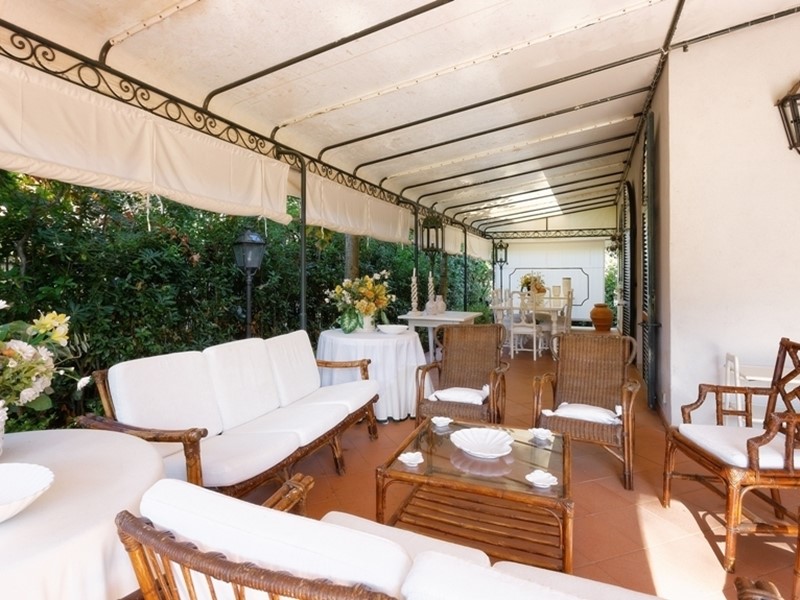 FORTE DEI MARMI ROMA IMPERIALE - AFFITTO ESTIVO VILLA ESCLUSIVA CON 12 POSTI LETTO - Bellissima villa singola di charme, parco esclusivo e piscina privata, situata a Forte dei Marmi Roma Imperiale a soli 400 metri dal mare.La villa è arredata con particolare buon gusto e con finiture di pregio. Esternamente abbiamo un bellissimo parco e piscina esclusiva, il parcheggio con vari posti auto una bellissima terrazza e un loggiato attrezzato per la vita all’aperto con zona relax e tavolo da pranzo.La villa è disposta su 3 livelli e quasi tutte le camere sono dotate di aria condizionata.Giardino, terrazzo, loggia adeguatamente arredati con tavolo e sedie.Piscina sul lato sinistro della villa (forma irregolare).Piano terra:ampia terrazza su tre lati della casa, con piastrelle in cotto. La terrazza è adeguatamente arredata con tavoli, sedie, poltrone. Il lato destro è coperto come un patio, quindi gli ospiti possono godersi l'esterno anche in caso di vento o pioggia, il patio ha un tavolo per mangiare all'aperto per 12 pax, ampio soggiorno con accesso alla terrazza e giardino, sala da pranzo con tavolo per 12 persone, con accesso alla loggia e al giardino, sala TV con TV satellitare con accesso alla terrazza e giardino, cucina con tutti gli elettrodomestici necessari (microonde, macchina per caffè americano ecc.), 1 camera da letto matrimoniale con bagno privato con doccia, altra camera da letto matrimoniale con bagno privato con doccia.Primo piano: una camera da letto matrimoniale con accesso alla terrazza e con bagno privato con doccia, camera da letto doppia con accesso al terrazzo e con bagno privato con doccia, altra camera da letto doppia con bagno privato con doccia e infine 2 camere da letto singole che dividono un bagno con vasca. Piano seminterrato:vano lavanderia con ferro/asse da stiro, lavatrice e asciugatrice.