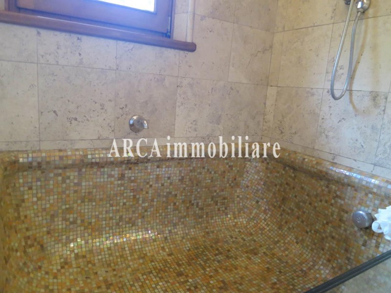 Pietrasanta Collina, bella villa in bifamiliare in ottimo stato di manutenzione e ben rifinita, composta da Piano Terra: soggiorno-cucina, bagno, porticato e pompeiana, cucina anche esterna. 1°piano: 2 camere, cameretta, due bagni e Terrazza. Ampia taverna con doppio accesso e cucina. Giardino di ca. 1.200 mq.. Vista Mare.