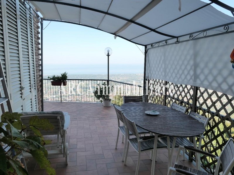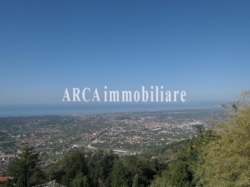 Pietrasanta Collina Vista Mare bellissima, villa composta da Tavernetta. 1°Piano: terrazza, ingresso, ampio soggiorno, cucina. Con 3 scalini si accede alla parte notte con 3 camere con bagno e balcone. + studio e servizio al 2°Piano. Cantinetta, giardino. Separato dalla abitazione 2 posti auto e terreno terrazzato.