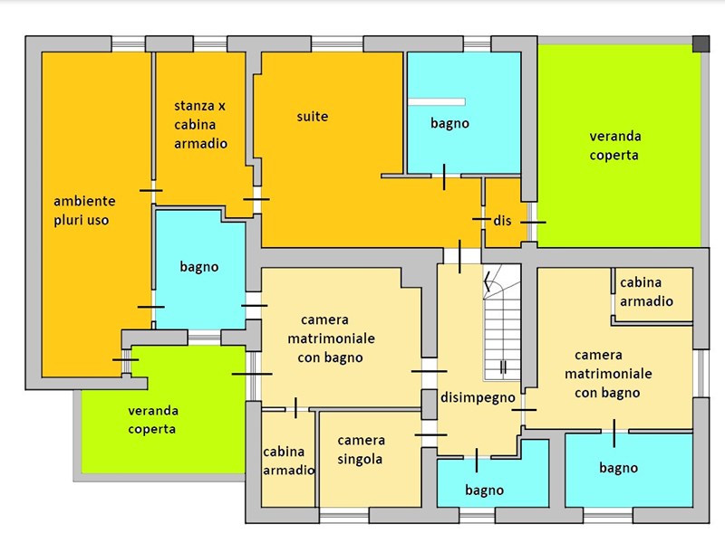 ZONA NOTTE: 4 camere da letto di cui 3 con bagno personale, un altro bagno di servizio, vano tecnico mansardato adibito a stanza multiuso, due grandi terrazzi.