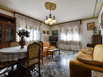 Centrale, abitazione divisa in 2 unità comunicanti; una al p.terra distribuita per: ingr.-soggiorno, cucina, disimp., bagno, camera e ripostiglio; l'altra al p.terra e primo distribuita per ampio portico, ingr., vano scala, disimp., soggiorno-pranzo, cucina, 3 camere, bagno e 2 poggioli. Al p.seminterrato cantina. Ripostiglio e ricovero attrezzi in locale adiacente. Area scoperta di circa 900 mq. Possibile ampliamento.
