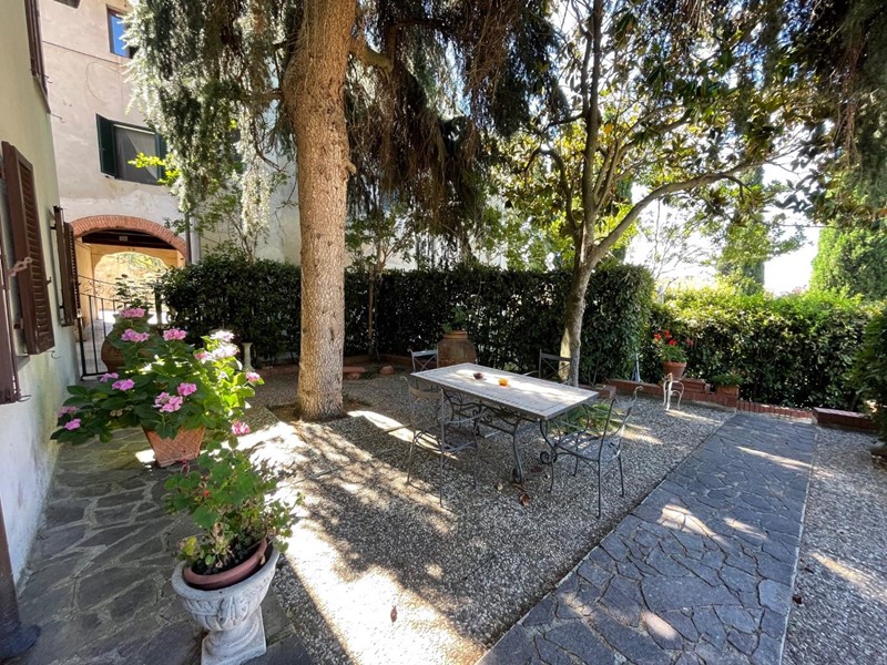 CALCI-Castelmaggiore- "La villa lungo il Rio" Nella culla della Val Graziosa, lungo la strada che sale al Monte Serra, ma all'interno, nascosta, in posizione riservata quindi, si trova questa villa di impianto anni '50, ma nel tempo modificata e aggiornata. Dalla strada, un arco antico conduce in un sorprendente giardino, che affaccia sul torrente. Il portone di accesso si apre sull'ingresso ampio, poi una zona di servizi laterale e di fronte la sala con camino, la sala da pranzo, un servizio, un altro disimpegno con seconda uscita all'esterno, cucina conviviale con camino e zona tecnica. Al piano notte, nel disimpegno si aprono quattro camere, una zona armadi ed un servizio. I metri quadri totali della villa sono circa 274, i vani sono 10,5. Dal romantico giardino si scende verso la piscina, con locale servizio, doccia e con zona di accesso al piazzale per le auto.