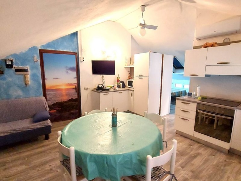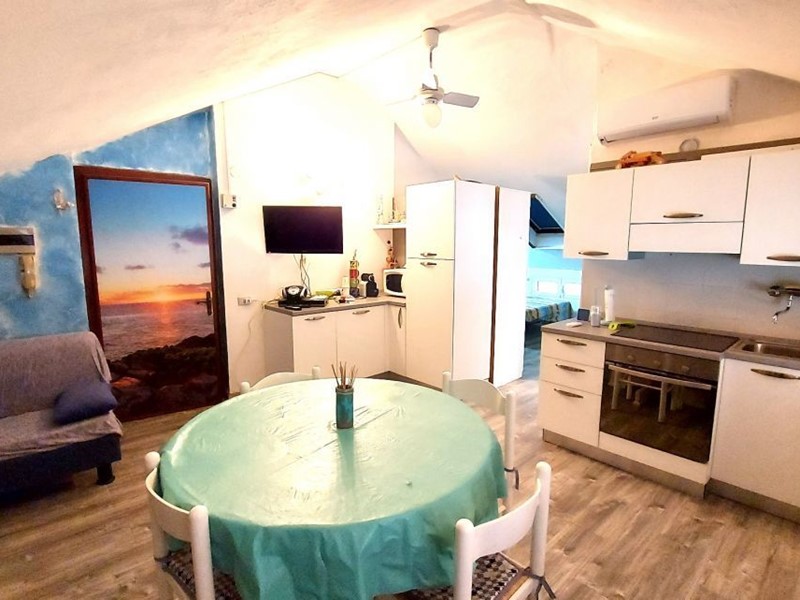 L’appartamento completamente ristrutturato di 55 mq ( 47 calpestabili) posto al secondo piano senza ascensore è il classico bilocale con una zona giorno open space con angolo cottura a vista, soggiorno e divano. Una camera da letto matrimoniale, e ulteriori due posti letto, nella parte bassa della mansarda. Servizio con box doccia.