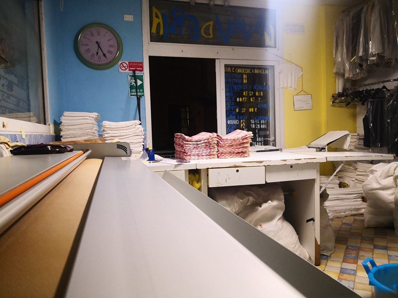 Il locale viene consegnato completo e fornito di tutti gli arredi e i macchinari necessari all'attività. (lavatrici, asciugatrici, stiratrici, ecc.)