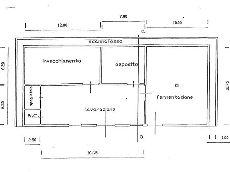 fabbricato seminterrato di circa 384mq attualmente destinato come rimessa macchinari, ma se completata all'interno possibile trasformarla in cantina per la vinificazione delle attuali produzioni