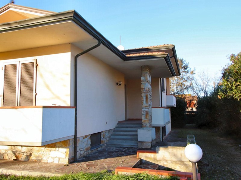 Santa Maria A Colle - Lucca Villa singola in vendita; composta al piano rialzato da ingresso con accesso da balcone, ampio salone esposto a sud con accesso ad alro grande terrazzo, sala da pranzo con accesso a balcone, cucina, disimpegno, tre camere (due matrimoniali con accesso ad altro balcone, una singola), bagno finestrato; al piano secondo mansardato da ampio vano uso studio o quarta camera o altro in base alle esigenze; al piano terra da taverna con accesso all'esterno da due portelloni, vano pluriuso, bagno finestrato; inoltre al piano seminterrato da vani uso ripostiglio; (In totale c.ca 290 metri). la villa è corredata da doppio garage (c.ca 30 metri) e giardino privato recintato con cancello carrabile e pedonale (c.ca 1200 metri)