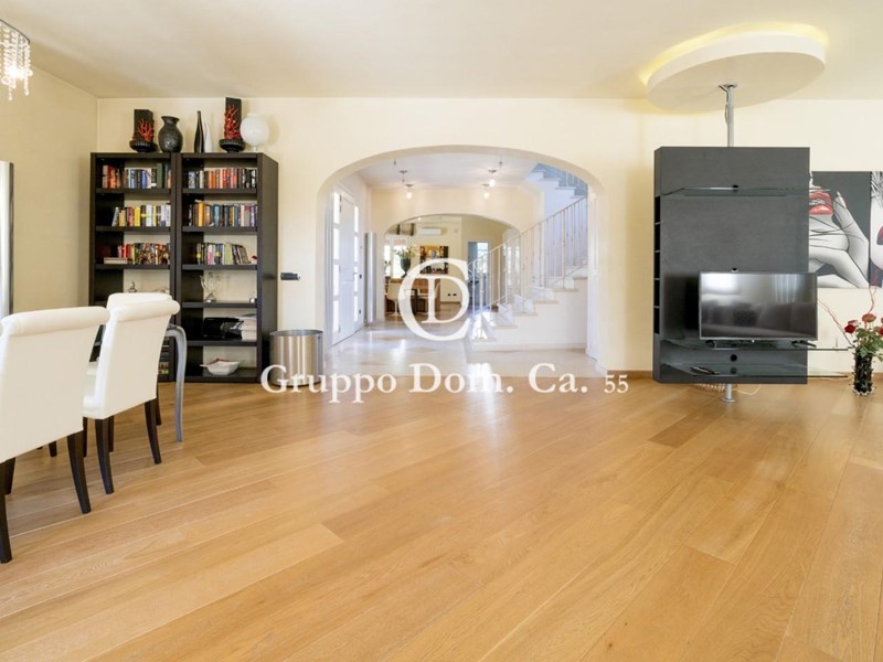 Il piano terra, accoglie gli ospiti con un ampio soggiorno, una sala da pranzo, un bagno e una cucina completamente rinnovati. Il piano primo presenta 4 eleganti camere matrimoniali, ognuna dotata di un bagno privato e una spaziosa cabina armadi. Nel piano interrato, troverete 2 ulteriori camere, 2 bagni, un ampio soggiorno, una cucina abitabile, lavanderia.
