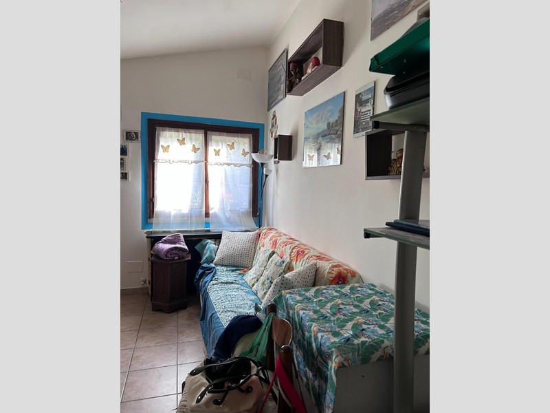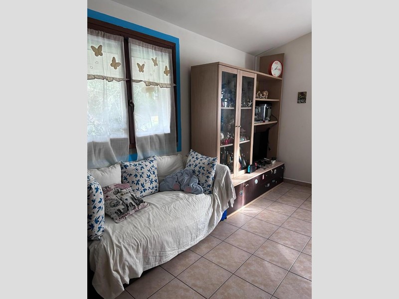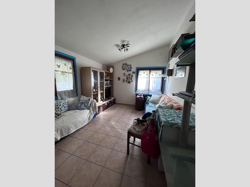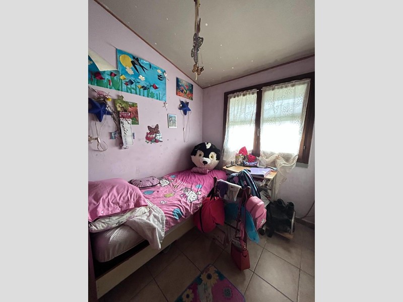 L'immobile è composto da: cucina abitabile, soggiorno, corridoio, camera matrimoniale, cameretta, bagno e ripostiglio adibito a lavanderia. Vi si può accedere attraverso il doppio ingresso, sia sul fronte che sul retro.
