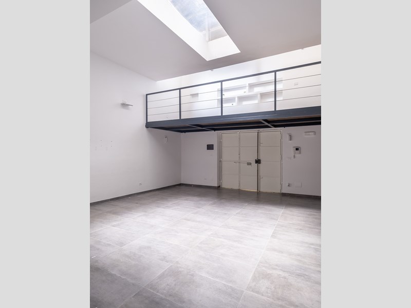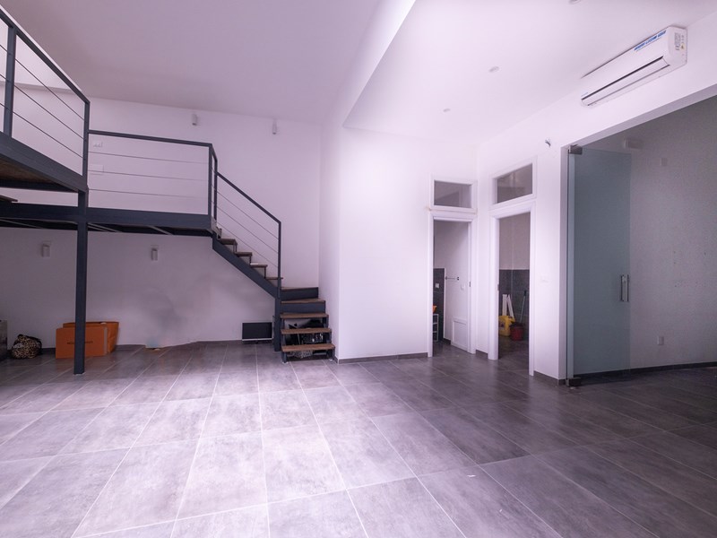 L’immobile è composto da ingresso su ampio open space, un vano al quale si accede da una moderna porta con doppie ante in vetro, archivio e servizio.