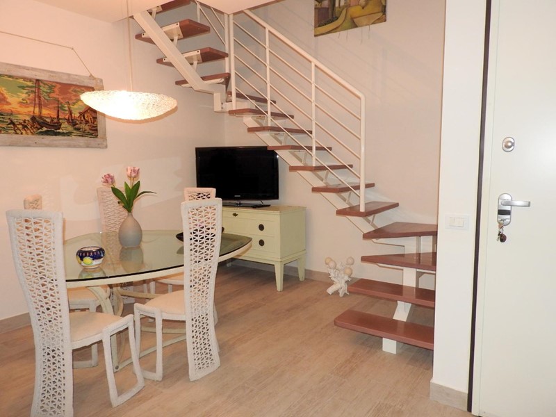 L’appartamento si sviluppa su due livelli e si compone di una zona soggiorno con angolo cottura e ripostiglio al primo livello, e poi al piano superiore, al quale si accede tramite comoda scala, trovano spazio 2 belle camere matrimoniali mansardate ed un bagno con box doccia.