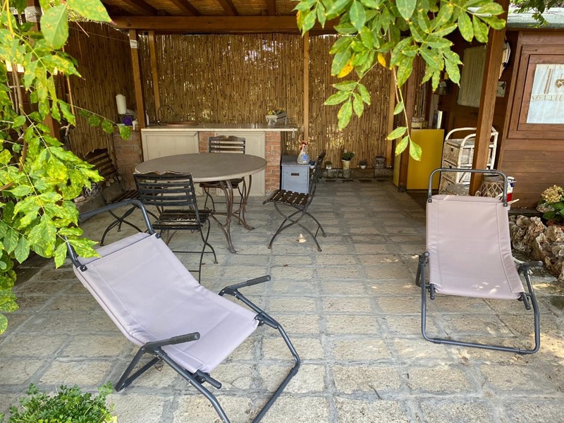 A completare la proprietà un giardino privato attrezzato di circa 70 mq con un piccolo annesso e con gazebo per trascorrere piacevoli momenti all’aria aperta, 2 posti auto ed infine una piscina condominiale.