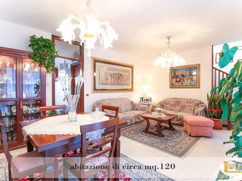 Propongo questa porzione centrale di TRIFAMILIARE, che risulta particolarmente indicata per una famiglia alla ricerca di spazi comodi e ben distribuiti. Sviluppata su 2 piani, è tenuta con cura dagli attuali proprietari. Al piano terra risalta l’ampio soggiorno, che trasmette una sensazione di accoglienza appena entrati; è comunicante con la cucina abitabile, da cui si accede al bagno e al garage interno. Al piano superiore vi sono 2 camere matrimoniali, 1 camera singola e 1 bagno padronale (con rubinetteria pregiata e mobile in marmo!). La casa dispone inoltre di 2 ripostigli, di 2 poggioli, di un giardinetto antistante e di un piccolo scoperto retrostante, nonchè di un ulteriore garage a pochi metri dall’abitazione e di un posto auto riservato. Ogni ambiente dispone di condizionatore e la caldaia è stata sostituita recentemente.