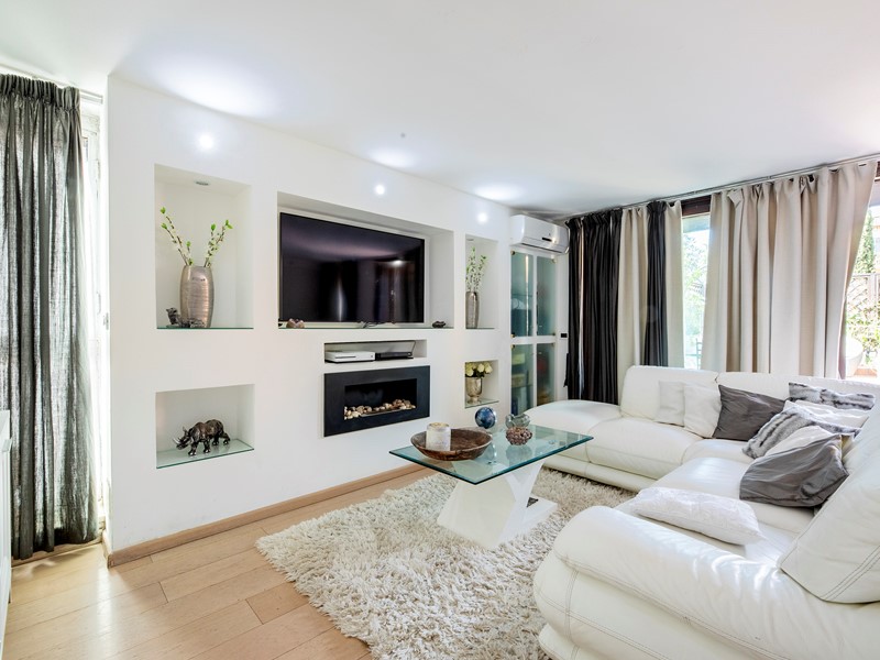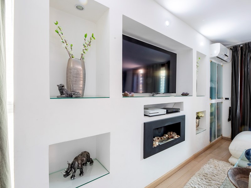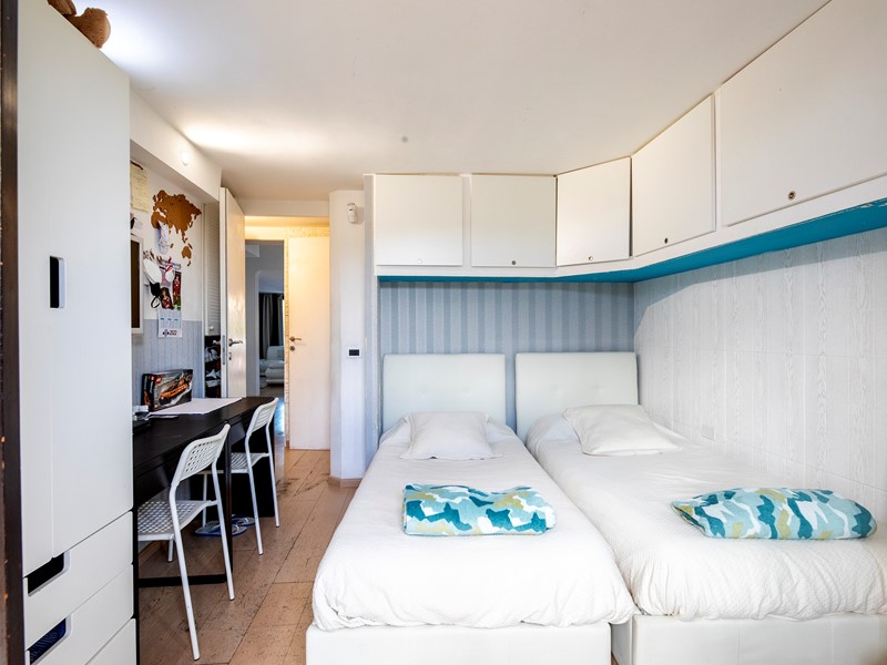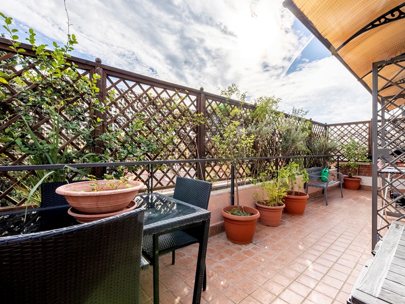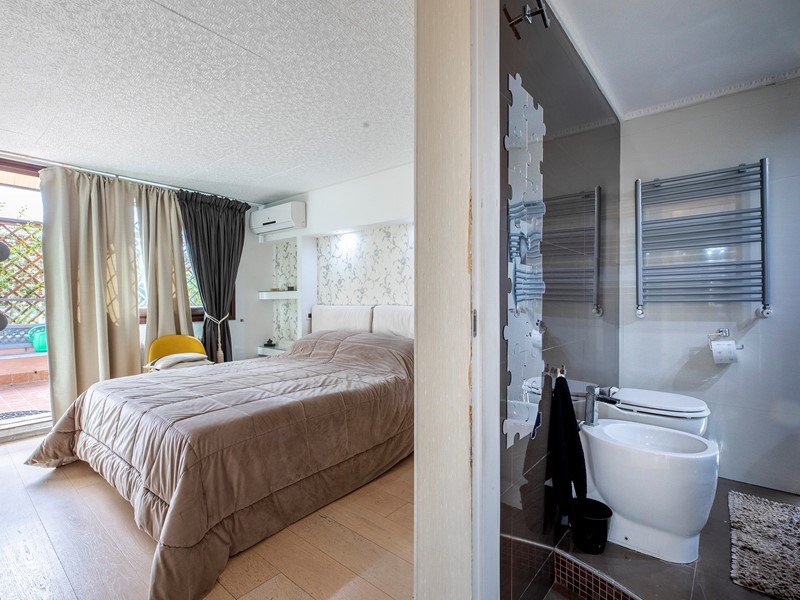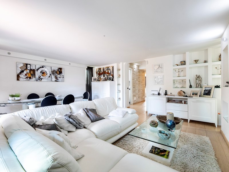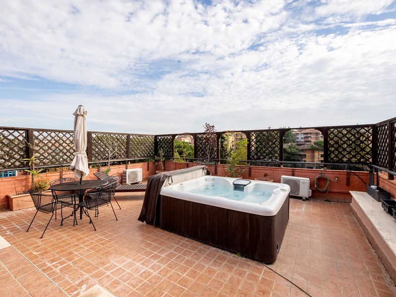 Soggiorno, cucinotto, due camere da letto, doppi servizi e tre terrazze panormiche di 160 mq complessivi, con vasca idromassaggio.