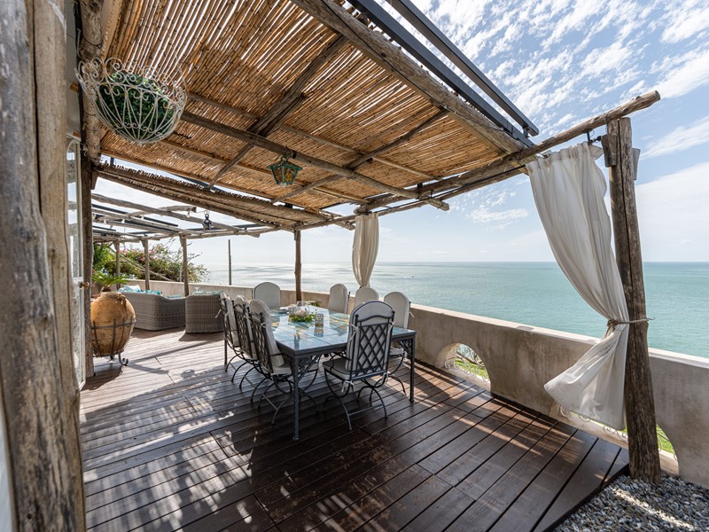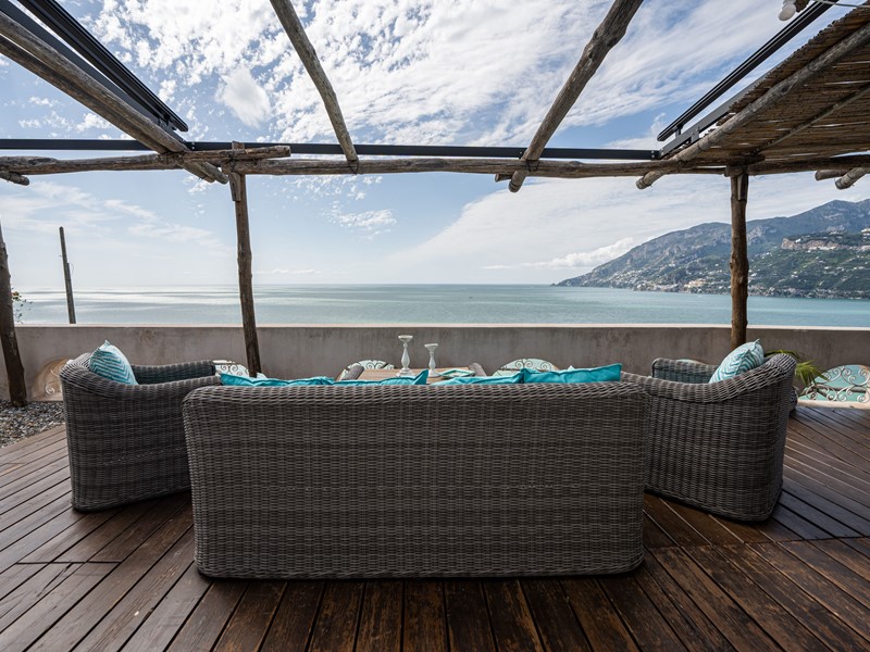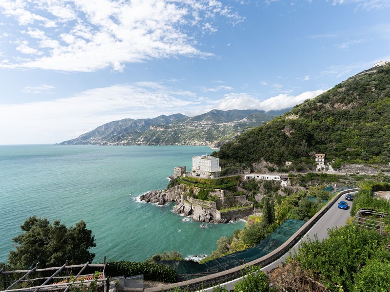 Considerata tra le più esclusive zone della Costiera Amalfitana: un edificio unico incastonato nella roccia a strapiombo sul mare, in posizione panoramica e dominante, che offre uno degli scorci più pittoreschi sull'intero paesaggio della Costa.