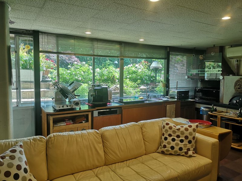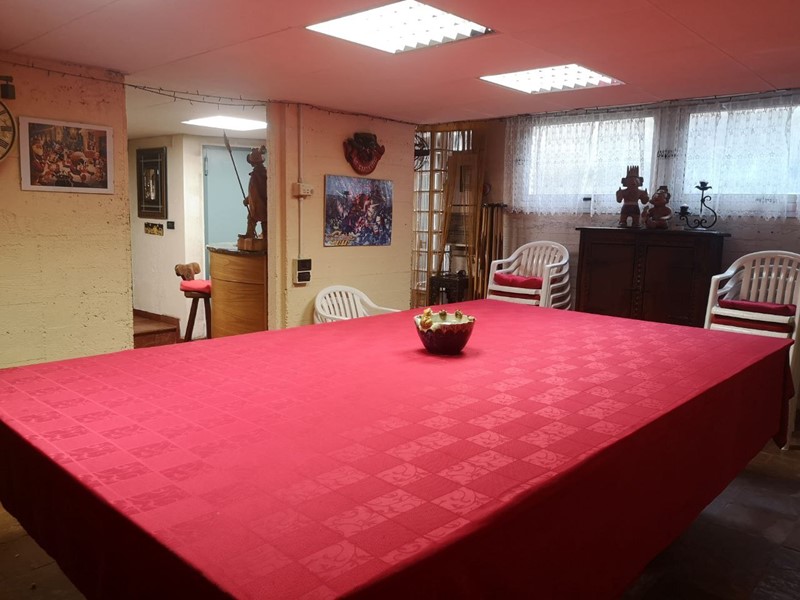 - PIANO PRIMO INTERRATO: si compone di una cucina, sala da pranzo con una parete vetrata con affaccio sul giardino, camino, sala biliardo, servizio e vari ripostigli; locale lavanderia con camera per il personale, locale caldaia.