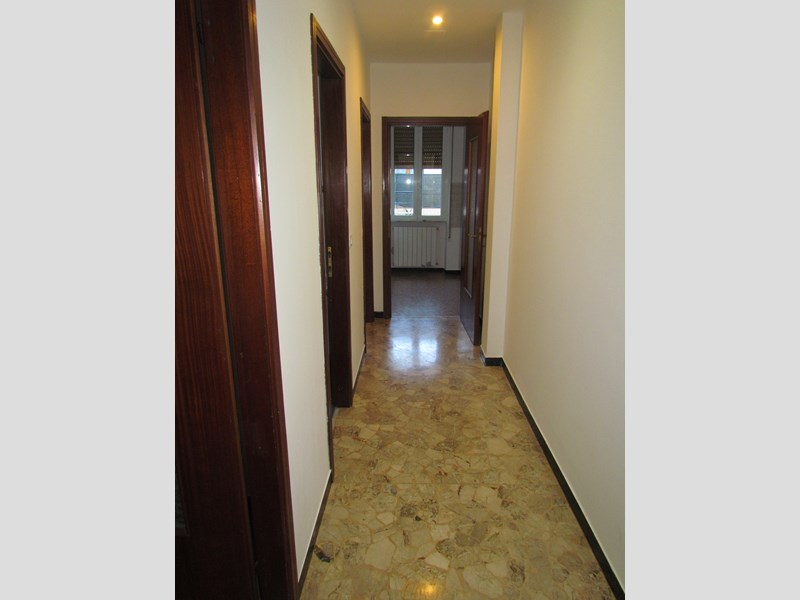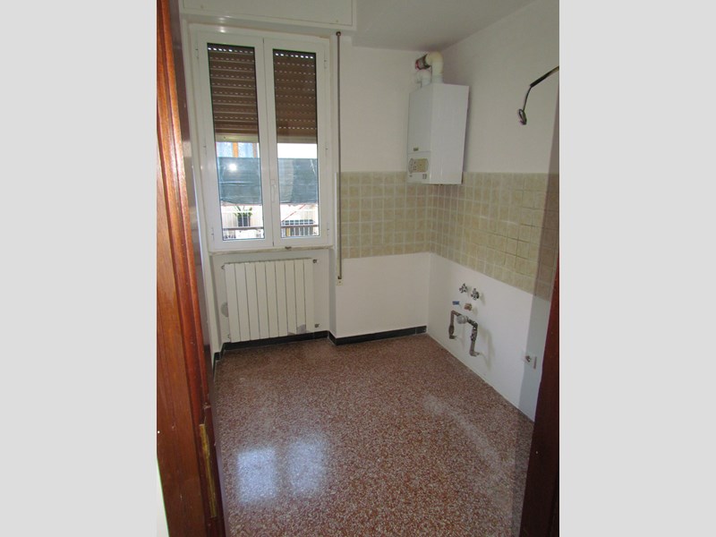 L'immobile è cosi' composto: Ingresso con classico corridoio alla genovese, camera matrimoniale, ampio soggiorno, cucina abitabile, bagno, balcone, giardino privato e ampio box.