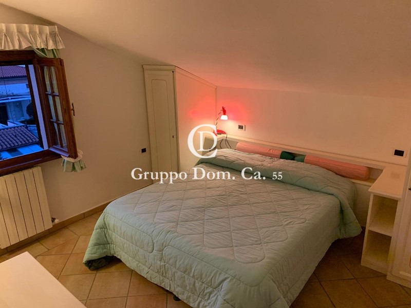 Forte dei Marmi - Centro - Appartamento mansardato con posto bici a 50 mt dal mare all’interno di una villa ristrutturata divisa in tre appartamenti indipendenti.  Al suo interno composto da due camere matrimoniali, due bagni di cui uno con vasca idromassaggio ed uno con doccia, piccolo ripostiglio, ampio living con camino, zona pranzo e cucinotto.